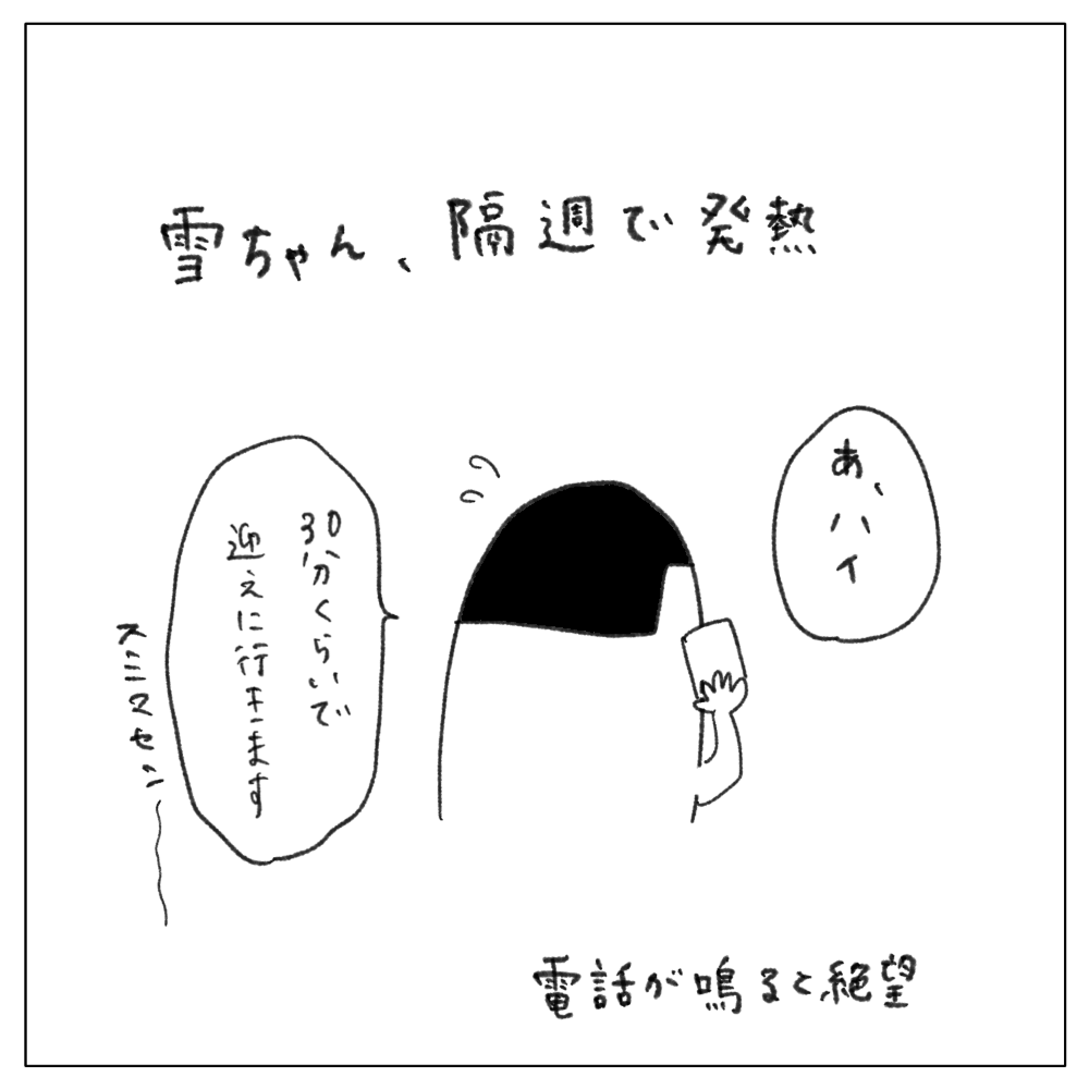 保育園あるあるですが、電話が鳴ると絶望するんですよね。あ、もう今日は終わりだって。
