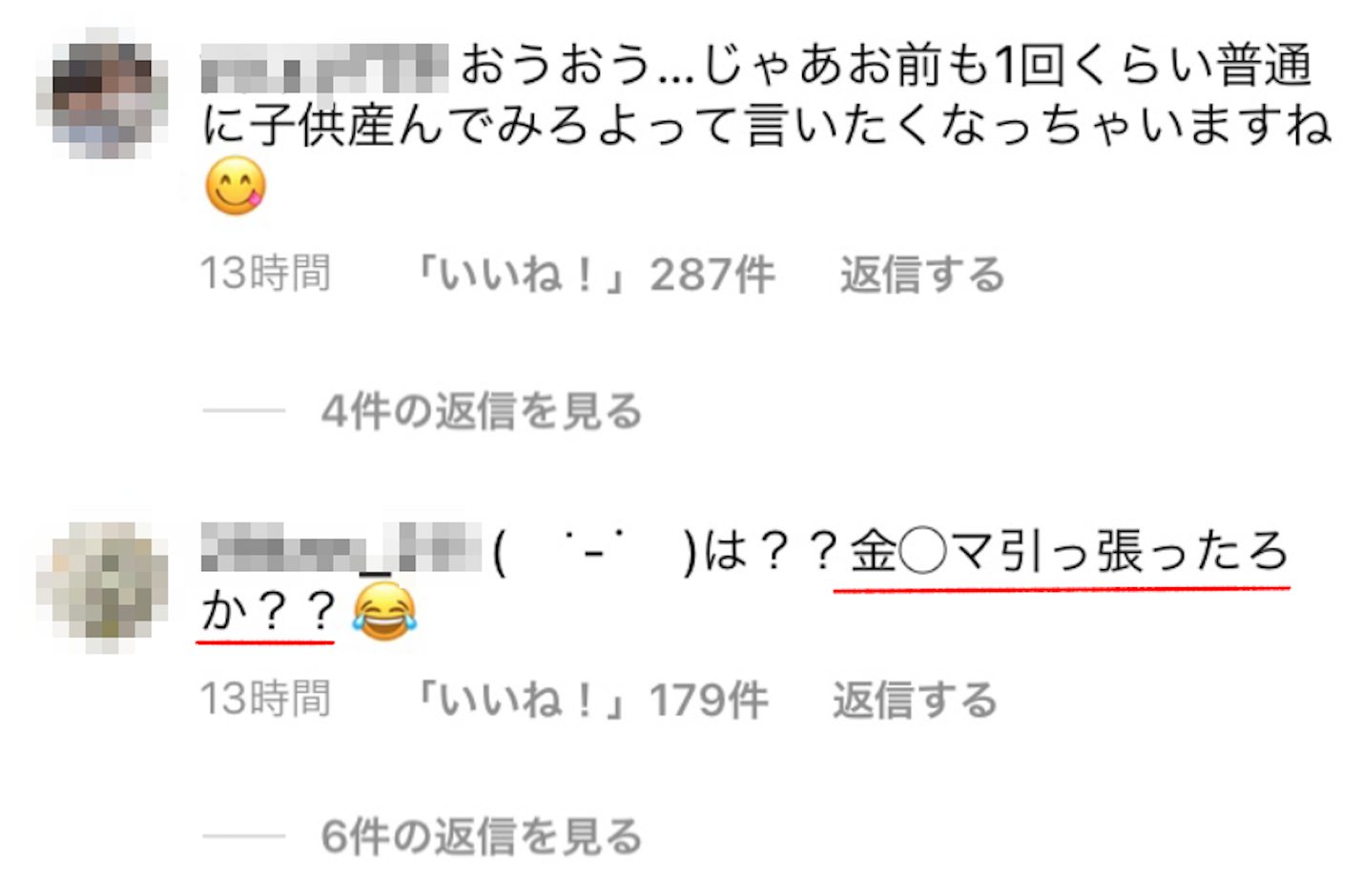 しかも179件もいいねついてる。200人弱に金◯マ引っ張られる夫。